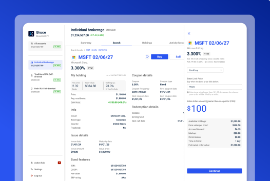 Embed our white-label trading UI, Ascend Investor, in your existing Treasury Management System (TMS) to lessen development and UX/UI work.